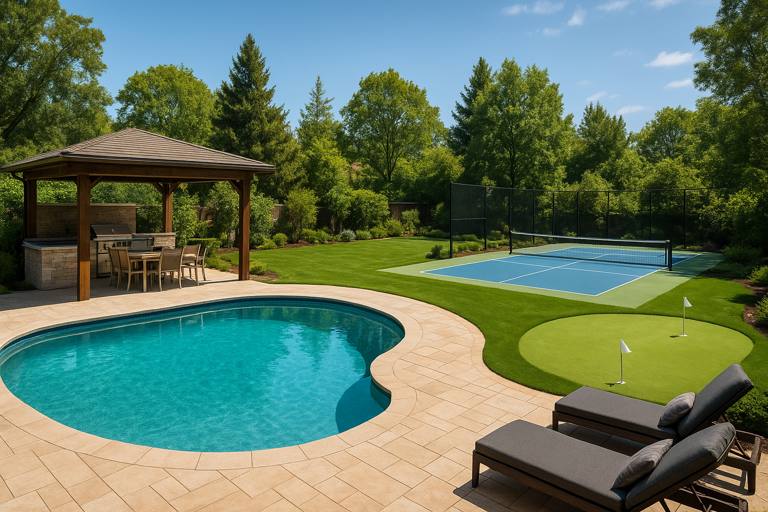 Custom outdoor kitchens, fire pits, BBQ islands, and entertainment areas for year-round enjoyment.